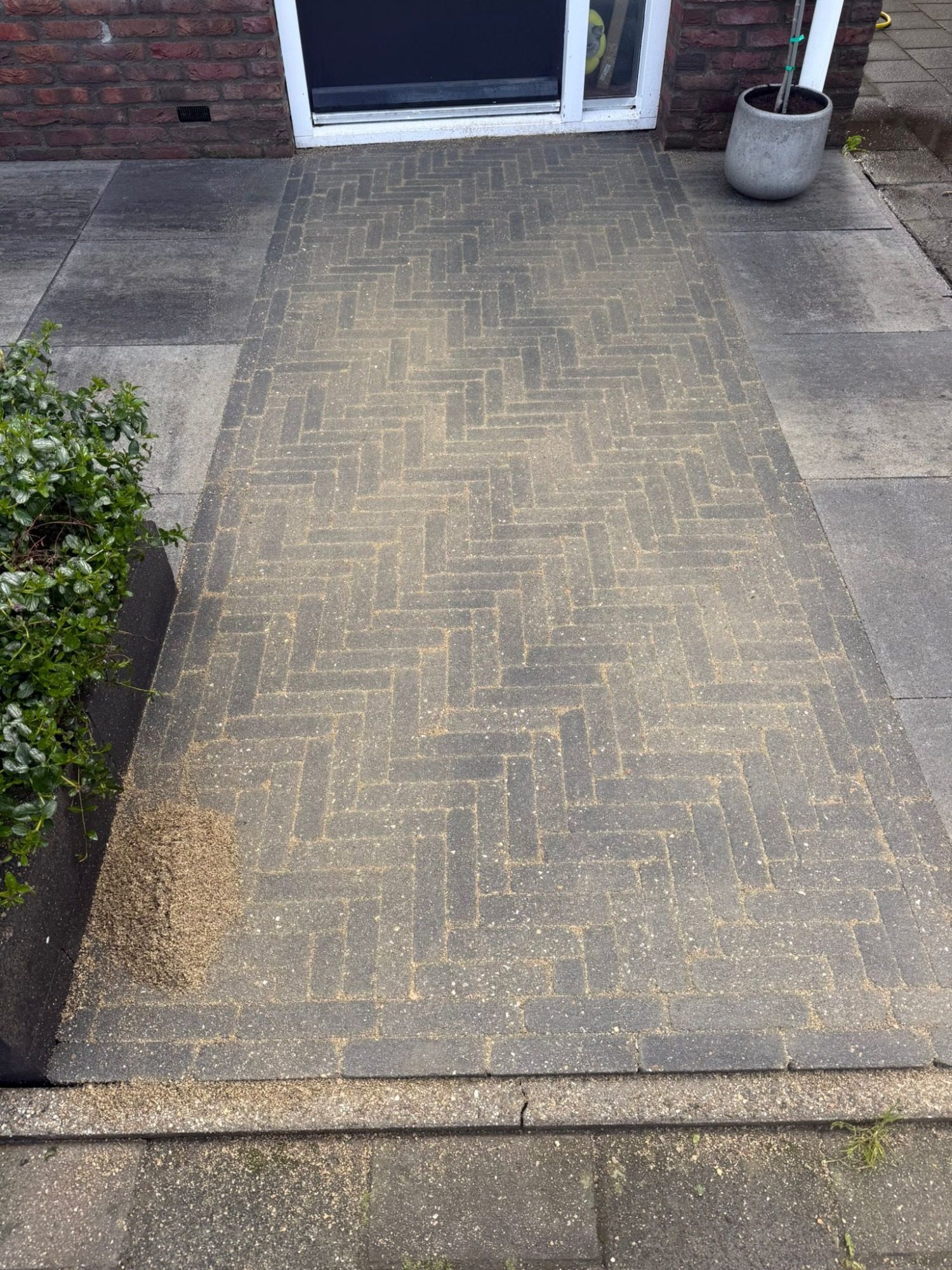 Het invegen van uw terras of oprit met brekerzand verzorgen wij voor € 1,- per m², inclusief het benodigde materiaal. Voor een extra beschermende werking tegen onkruid en verzakking bieden wij het gebruik van onkruidwerend voegzand aan, tegen een tarief van € 5,- per m². Beide werkzaamheden worden vakkundig uitgevoerd, zodat uw bestrating duurzaam en netjes wordt afgewerkt.