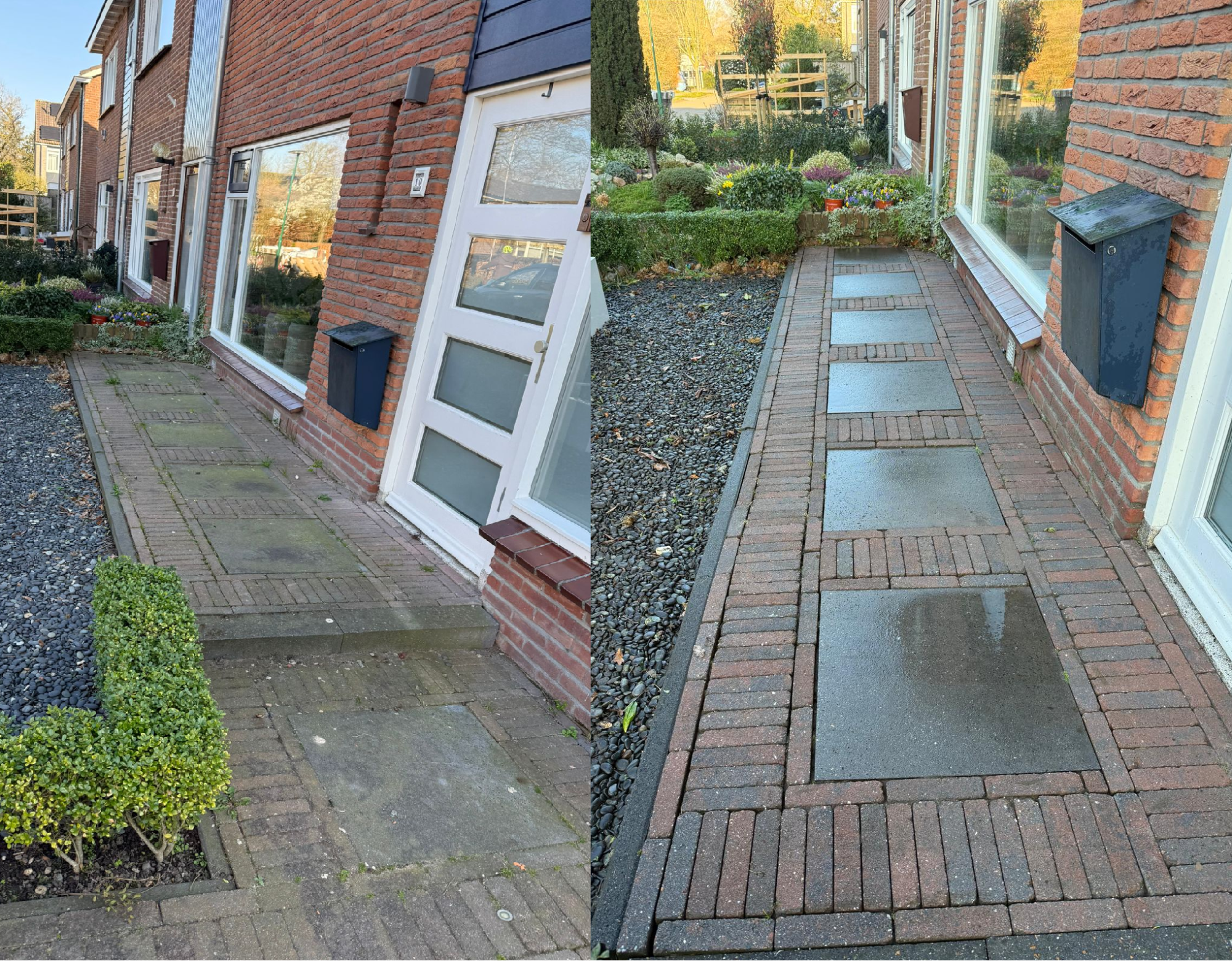 De kosten voor de reiniging bedragen € 3,50 per m². Wij reinigen uw tuin met een professioneel Zep-reinigingsmiddel, waarmee vuil, aanslag en verontreinigingen grondig worden verwijderd. Aansluitend spuiten wij het oppervlak zorgvuldig af voor een schoon en verzorgd eindresultaat.